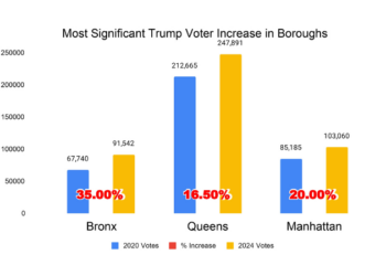 In the 2024 presidential election, Donald Trump experienced a significant surge in support across all boroughs of New York City,...