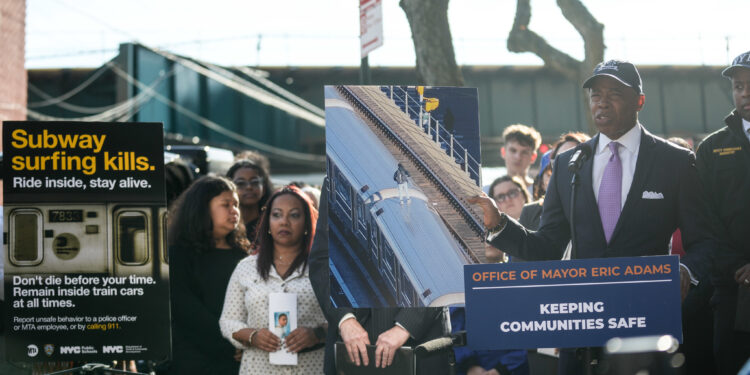 At a press briefing, Adams highlighted the city’s commitment to protecting young people, noting that NYPD drone units, mobilized by 911 calls, have saved over 100 lives in the past year. Emphasizing the urgent need to prevent these dangerous stunts, Mayor Adams warned, “Subway surfing is a deadly trap, one that is endangering more and more young people who see others doing it on social media. But those five minutes of online fame could lead to years of regret and pain or a lifetime of trauma and heartbreak for a family that lost a child. Subway Surfing Kills – Ride Inside, Stay Alive.”
