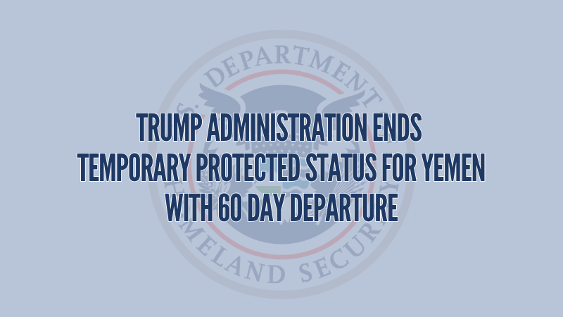 Trump Administration Ends Temporary Protected Status for Yemen with 60 Day Departure